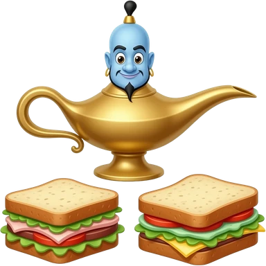 Lampada di Aladino da cui esce un fumo a forma di tramezzino emoji