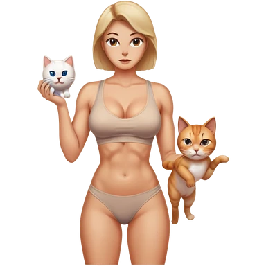 Накаченная слегка потная голая кошка-девушка с раздвинутыми ногами и большой грудью emoji