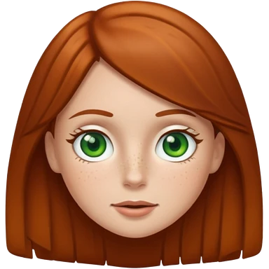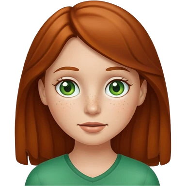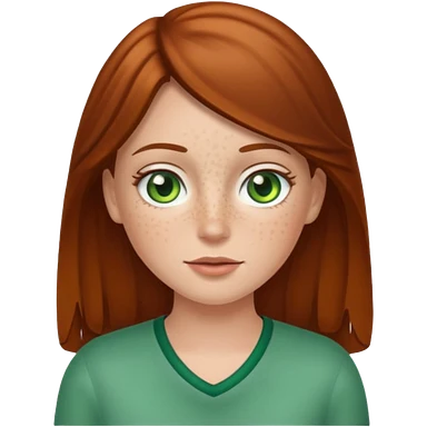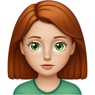 Create an emoji of a white girl with freckles, brown hair and green eyes emoji