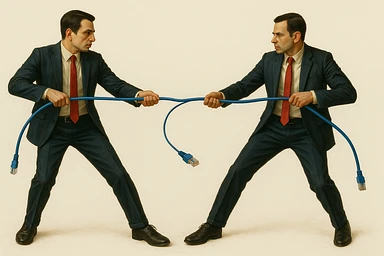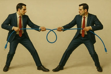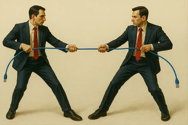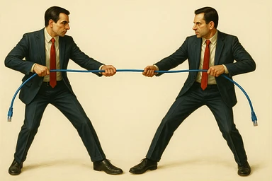 Сгенерируй мне тоже самое, только заместо обычной веревки они тянут шнур патч корд emoji