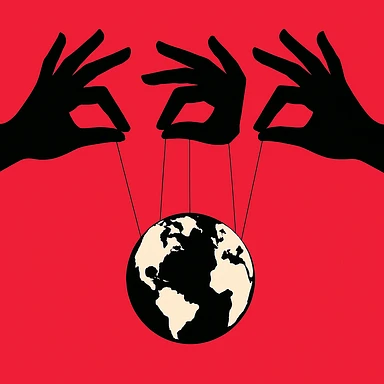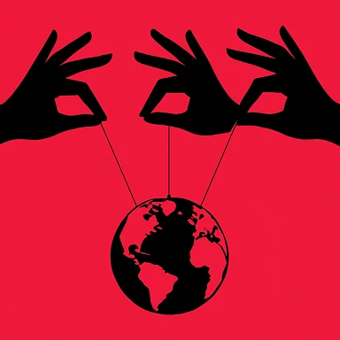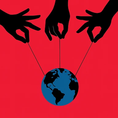 Сгенерируй тоже самое, только три одинаковые такие руки держат так же на веревка планету emoji