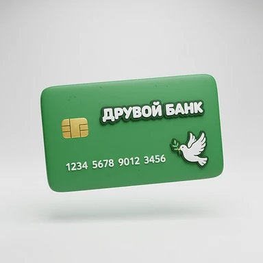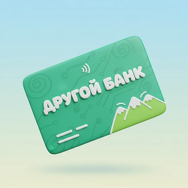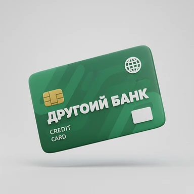 Используя слегка мультяшную, но при этом объемную стилистику cгенерируй кредитную карту на которой написано ДРУГОЙ БАНК, цвет карты зеленый emoji