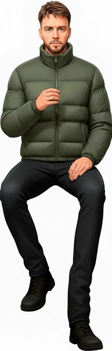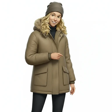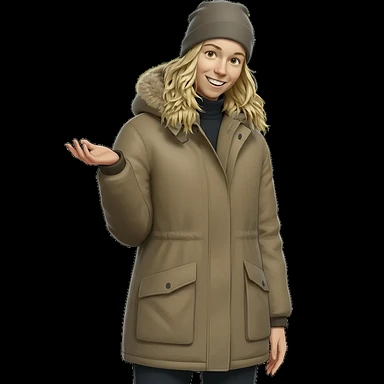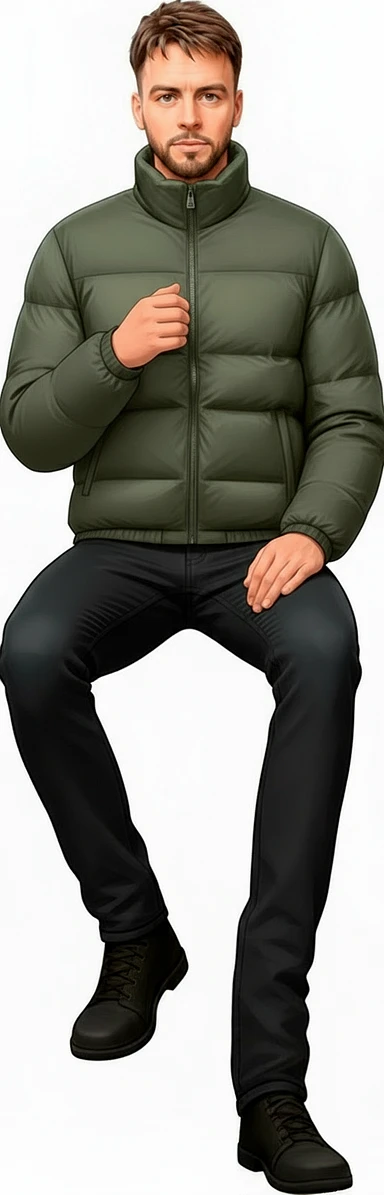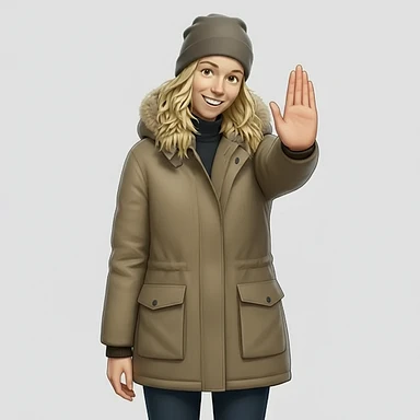 нарисуй человека в зеленой куртке в таком же стиле, правая рука остается в таком же положении, а левая в положении как на картинке, без фона emoji
