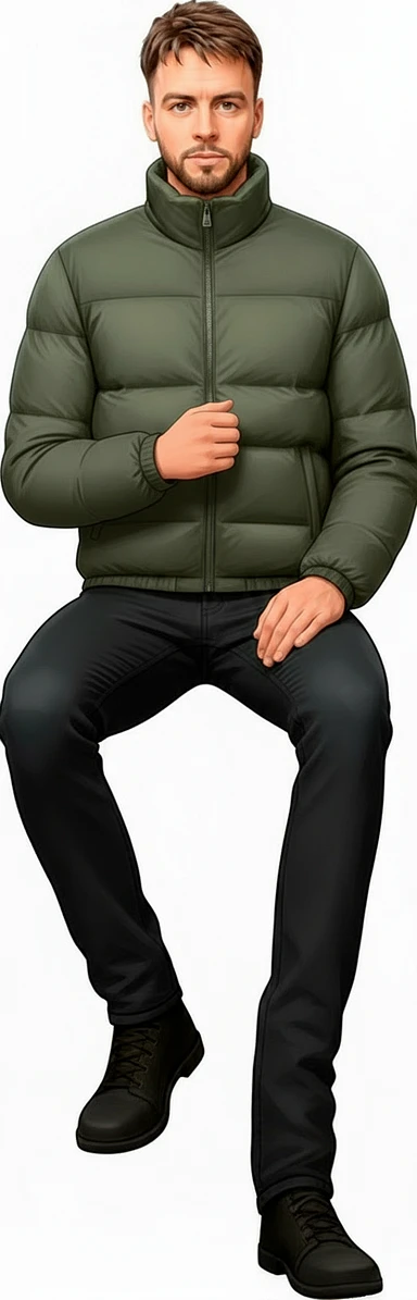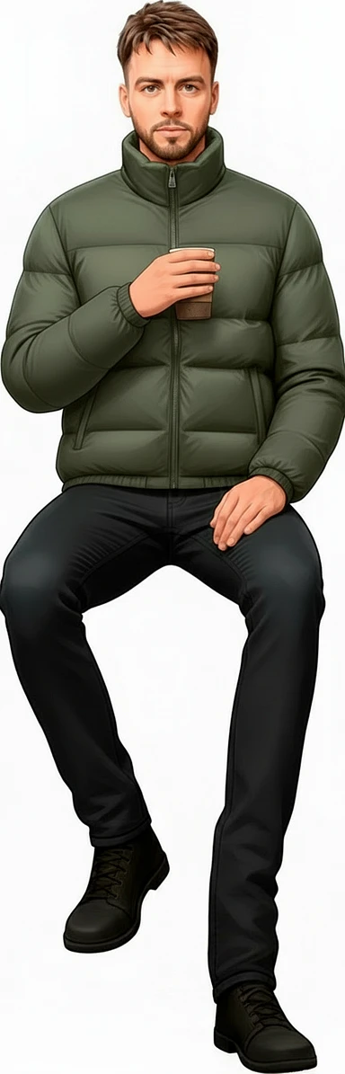 нарисуй этого человека с таким же лицом, но до пояса, он одет в куртку осеннюю и картинка строго в профиль, стиль картинки повтори точно такой же как во вложении, без фона emoji