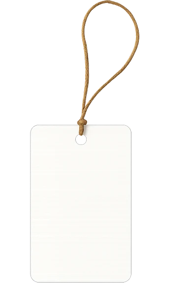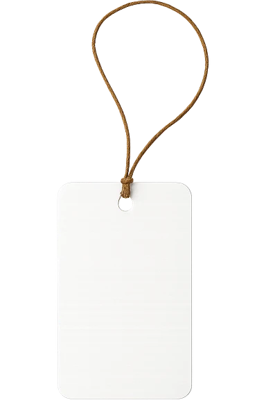 Сгенерируй такой бумажный, белый ценник на прозрачном фоне, с длинной коричневой веревочкой emoji