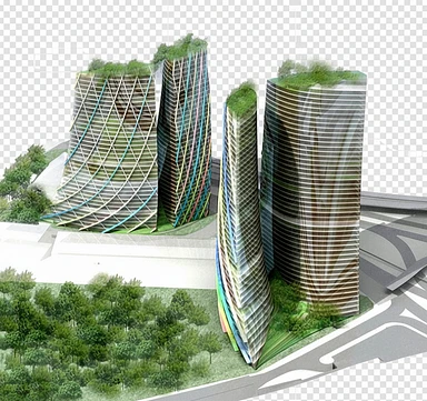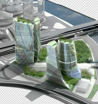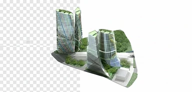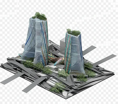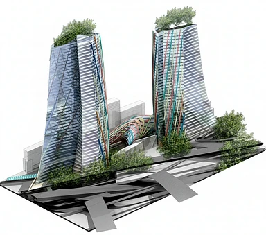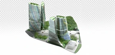 Изометричная, яркая, детализированная и фотореалистичная иллюстрация комплекса зданий в стиле 3D-коллажей городов, насыщенные цвета, аккуратные и чёткие линии, мультяшно-реалистичная стилистика. Чёткие контуры, не размазанные линии, высокое качество, прозрачный фон, не обрезать края картинки emoji