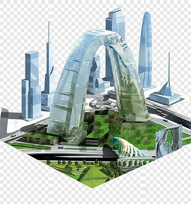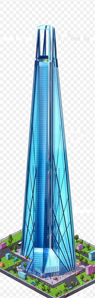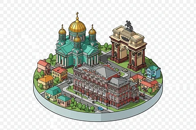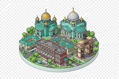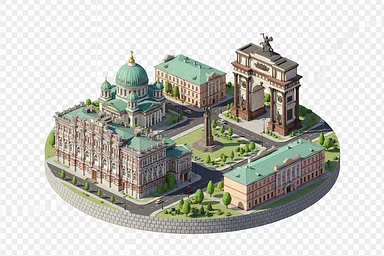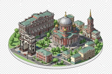 Изометричная, яркая, детализированная и фотореалистичная иллюстрация зданий в стиле 3D-коллажей городов, насыщенные цвета, аккуратные и чёткие линии, мультяшно-реалистичная стилистика. Чёткие контуры, не размазанные линии, высокое качество, прозрачный фон, не обрезать края картинки emoji