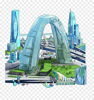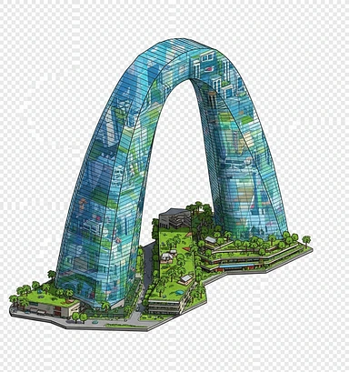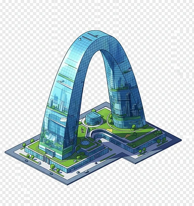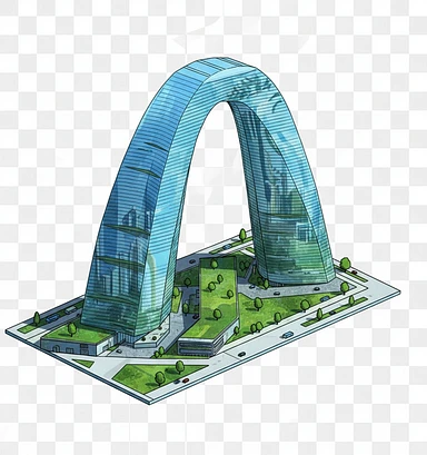 Изометричная, яркая, детализированная и фотореалистичная иллюстрация арки в стиле 3D-коллажей городов, насыщенные цвета, аккуратные и чёткие линии, мультяшно-реалистичная стилистика. Чёткие контуры, не размазанные линии, высокое качество, прозрачный фон, не обрезать края картинки emoji