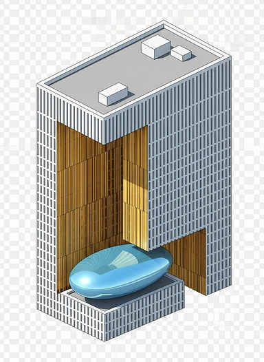 Изометричная, яркая, детализированная и фотореалистичная иллюстрация здания в стиле 3D-коллажей городов, насыщенные цвета, аккуратные и чёткие линии, мультяшно-реалистичная стилистика. Чёткие контуры, не размазанные линии, высокое качество, прозрачный фон, не обрезать края картинки emoji