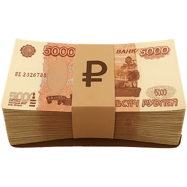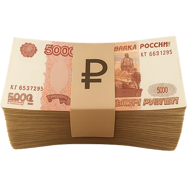 Используя такую стилистику сгенерируй пачку 5000 купюр рублей, прозрачный фон emoji