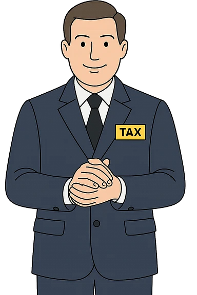 Используя такую стилистику сгенерируй налогового инспектора, который смотрит прямо на зрителя потирает руки, прозрачный фон emoji