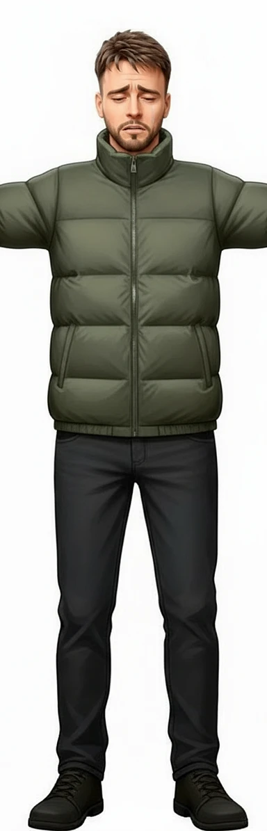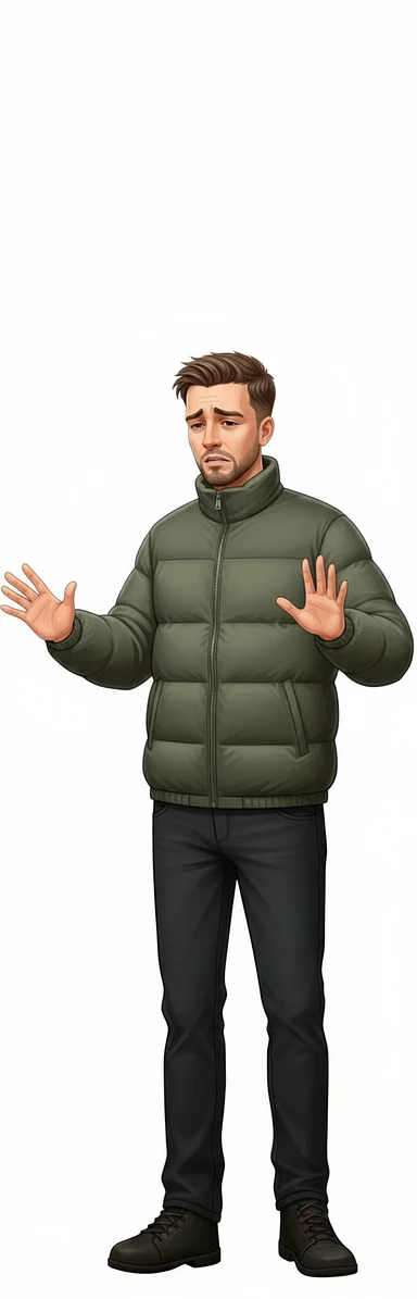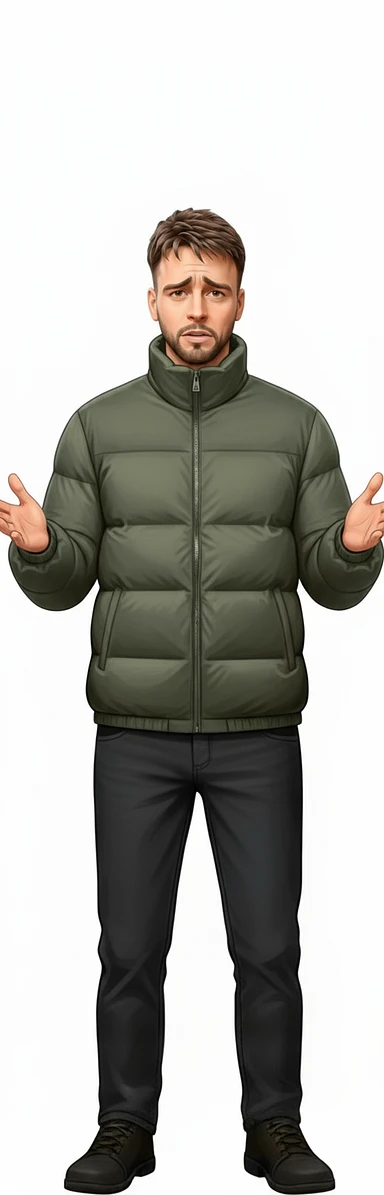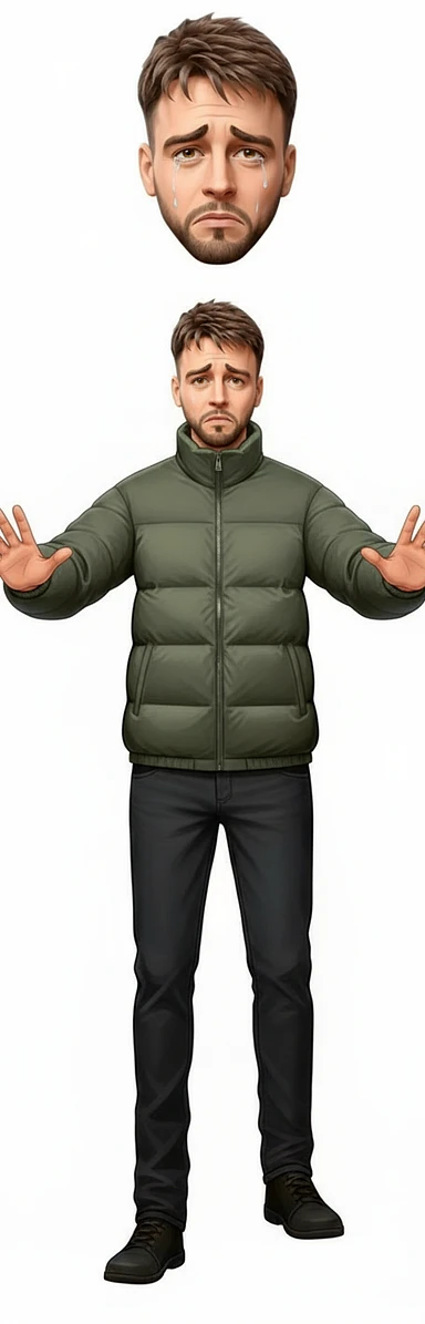нарисуй этого человека с таким же лицом, но до пояса, он одет в куртку осеннюю и картинка строго в профиль, стиль картинки повтори точно такой же как во вложении, без фона image | AI Emoji Generator