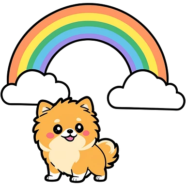 Tan Pomeranian under a rainbow emoji