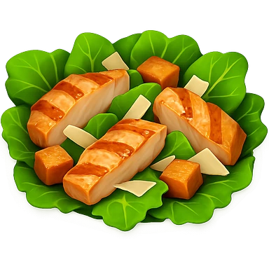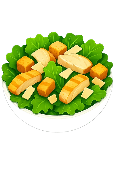 Используя такую же стилистику картинки сгенерируй Салат Цезарь кусочками курицы, прозрачный фон emoji