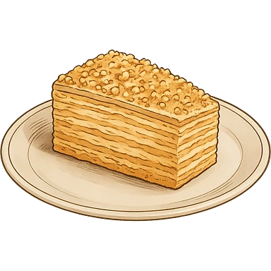 Используя такую стилистику сгенерируй тарелку, на которой лежит кусок торта Наполеон, прозрачный фон emoji