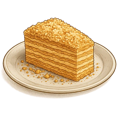 Используя такую стилистику сгенерируй тарелку, на которой лежит кусок торта Наполеон, прозрачный emoji