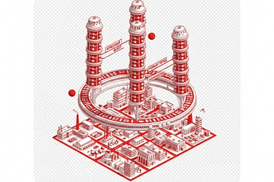 Изометричная, в красно-белых цветах, детализированная и фотореалистичная иллюстрация в стиле 3D-коллажей городов, аккуратные и чёткие линии, мультяшно-реалистичная картинка. Чёткие контуры, высокое качество, прозрачный фон, не обрезать края картинки. В стиле картинки, которую я прикрепил emoji
