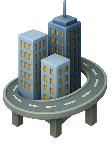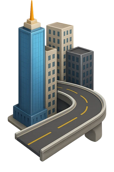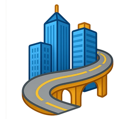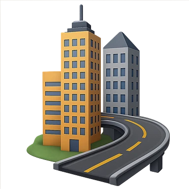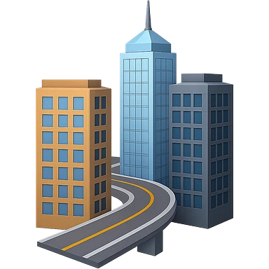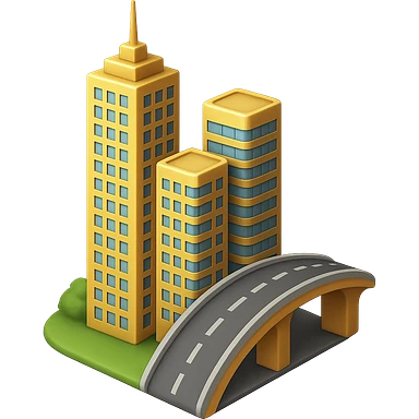 Сделай детализированное емодзи - небоскребы а рядом дорога-мост, чтобы емодзи олицетворял слово ИНФРАСТРУКТУРА. Дорога может как то закручиваться вокруг небоскребов или просто. Без фона, на пнг прозначном фоне image | AI Emoji Generator
