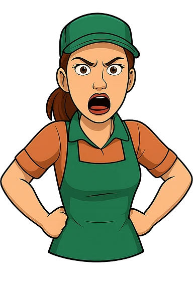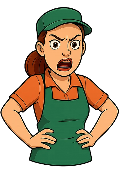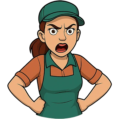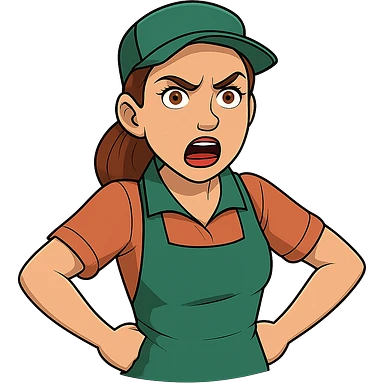 Точно такой же персонаж, только она возмущенно смотрит прямо на зрителя с открытым ртом, руки в боки, прозрачный фон emoji