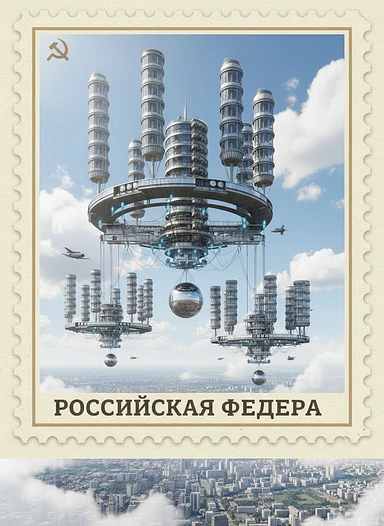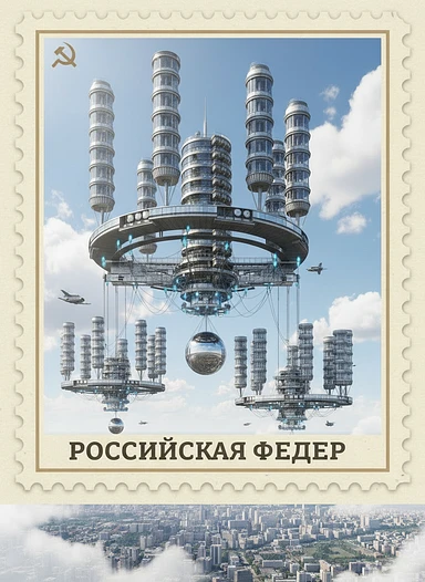 Москва-Сити, если бы его построили в СССР в 1934 году Стилизуй изображение под марку как на фото emoji
