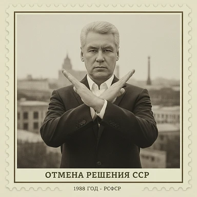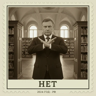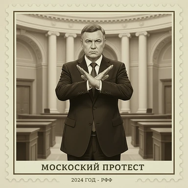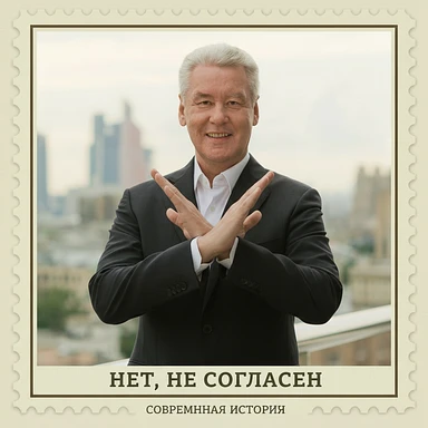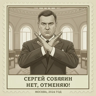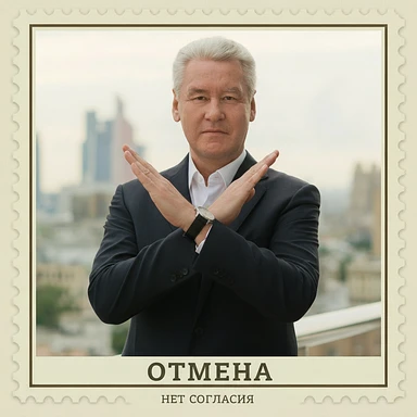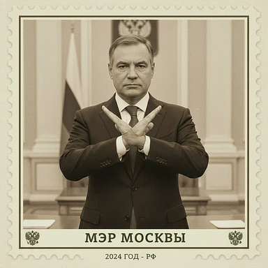 Сергей Собянин в костюме делает крест руками, как бы отменяет, не соглашается Стилизуй изображение под марку как на фото emoji