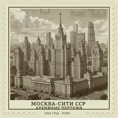 Ампир-Небоскребы Москва-Сити, в СССР 1934 год. Архивные чертежи Стилизуй изображение под марку как на фото emoji