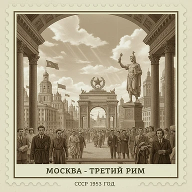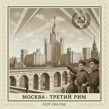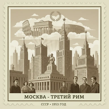 Москва - третий Рим. СССР 1953 год Стилизуй изображение под марку как на фото emoji