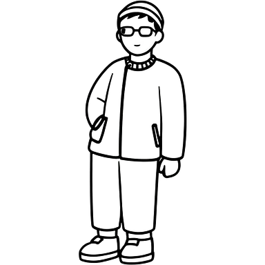 انسان لابس بلوزه سوده عليها رقم عشرين من ورا وقدام وبنطلون اسود فيه حبل وجزمه emoji
