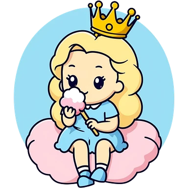 Golden Queen Sit tong on a famous park like St.andrews eating cotton candy emoji