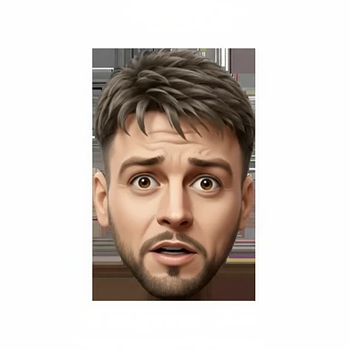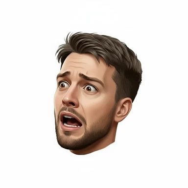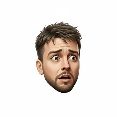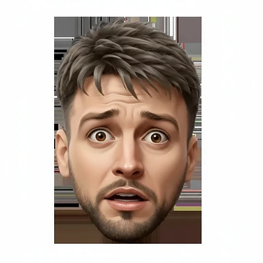 нарисуй этого человека с таком же стиле, только взгляд должен быть испуганно растерянный, без фона emoji