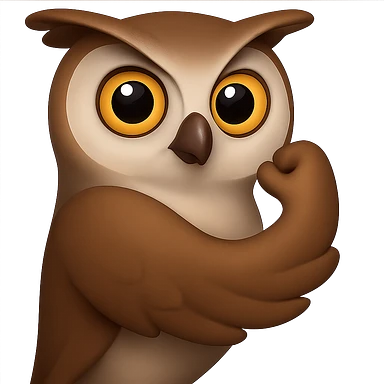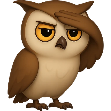 В стилистике эмоджи сгенерируй сову с накрашенным клювом и ресницами, одним крылом она держит смартфон, а другим что-то листаем в нем, вид скучающий и недовольный, прозрачный фон image | AI Emoji Generator