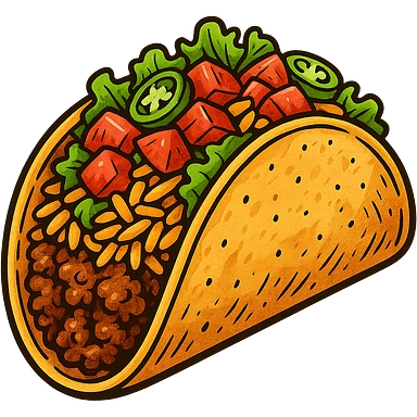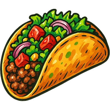 мексиканское тако, яркий, рисованный, но при этом объемный стиль, прозрачный фон, четкие линии emoji