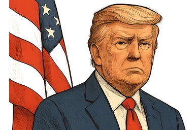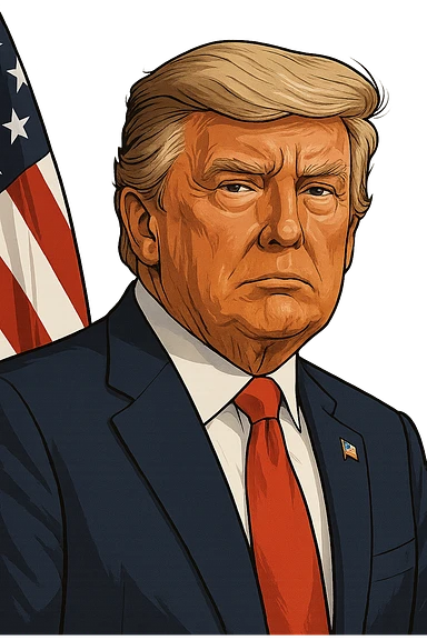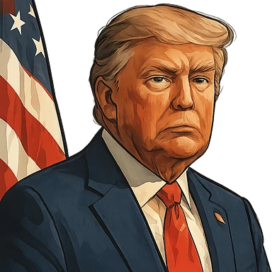 Дональд Трамп в слегка рисованном, но при это объемный стиле, прозрачный фон emoji