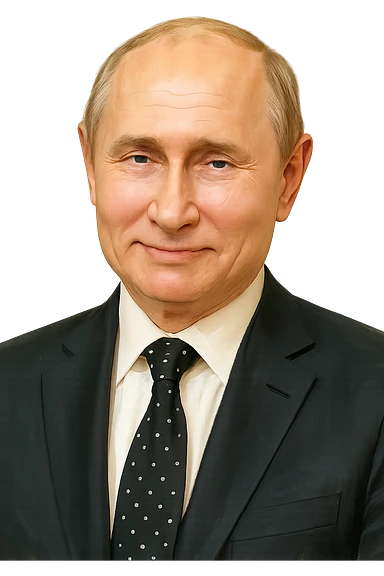 Владимир Путин в слегка рисованном, но при это объемный стиле, слегка улыбается, прозрачный фон emoji