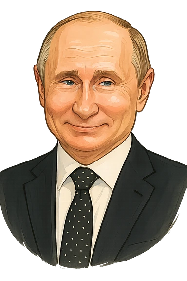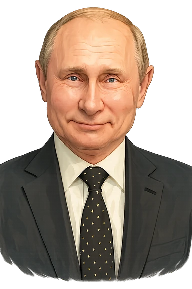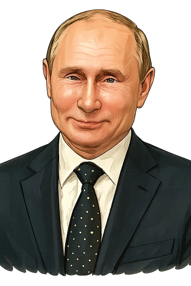 Владимир Путин в слегка рисованном, но при это объемный стиль, прозрачный фон emoji