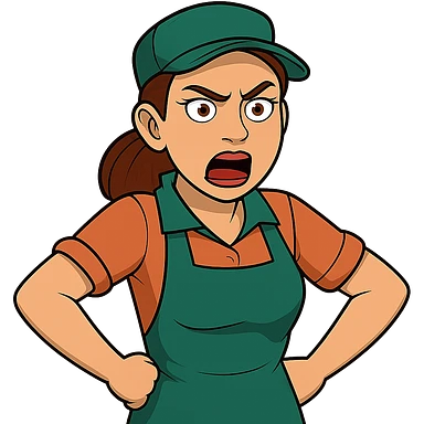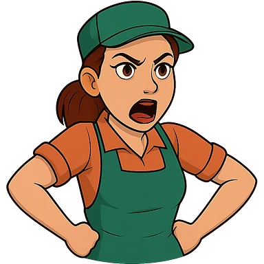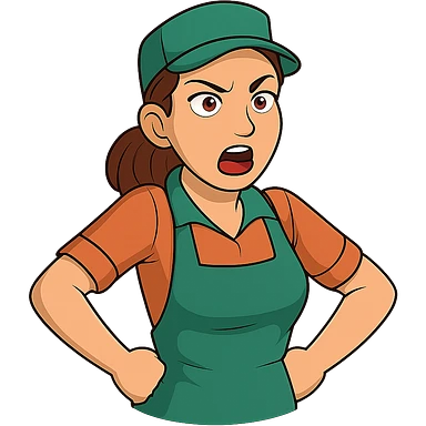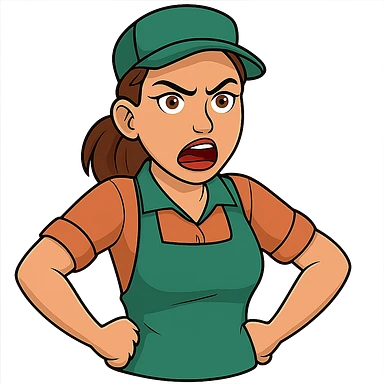 Точно такой же персонаж, только она возмущенно смотрит прямо на зрителя с открытым ртом, руки в боки, прозрачный фон emoji