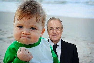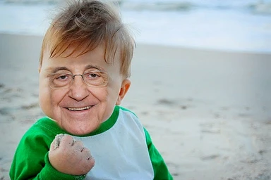 Замени лицо малыша на лицо мужчины, который на второй фотографии. Сохрани пропорции, сделай это не так кринжово