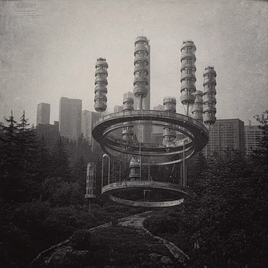 Летающий город в СССР 1920-х годов Георгия Крутикова, реалистичная стилистика 1920х годов в цвете, аккуратно добавить лого СССР серп и молот image | AI Emoji Generator