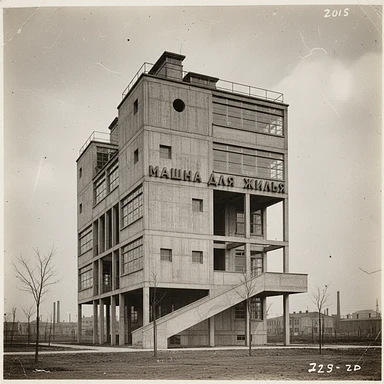 капсульный дом-коммуну конструктивизм 1920-е годы из произведения "Мы" Замятина стилизуй под марку как на фото emoji