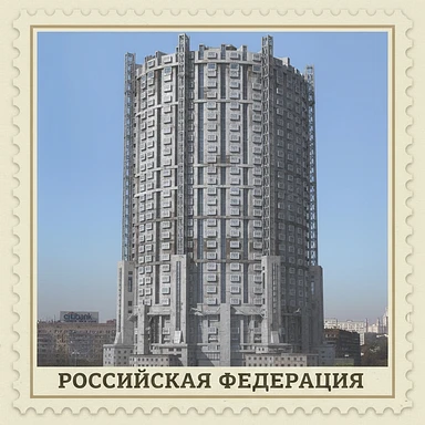 Замени изображение внутри марки на капсульный дом-коммуну конструктивизм 1920-е годы, из произведения "Мы" замятина emoji