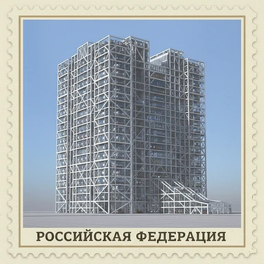 капсульный дом-коммуну конструктивизм 1920-е годы из произведения "Мы" Замятина стилизуй под марку как на фото emoji