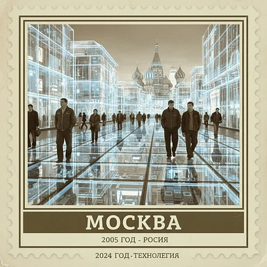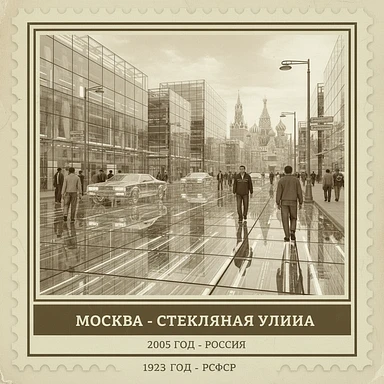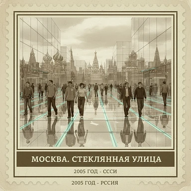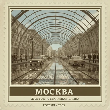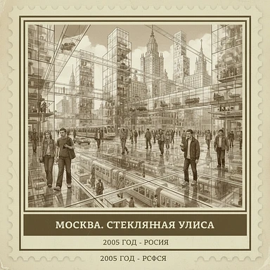 Полностью стеклянная улица в Москве, 2005 год. Стиль - фотореализм. Стилизуй под марку с фото emoji