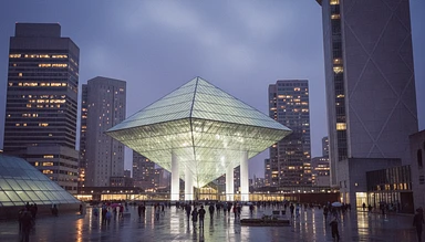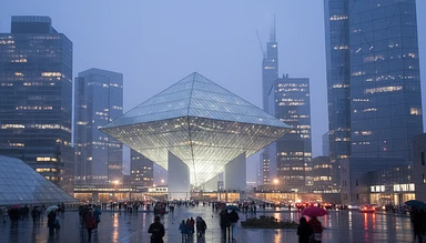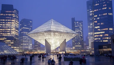 Полностью стеклянная улица в Москве, 2005 год. Стиль - фотореализм. Стилизуй под марку с фото