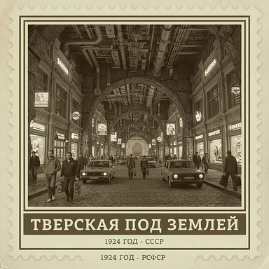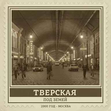 Полная копия Тверской улицы под землей. Россия, 2000 год. Стиль - фотореализм. Стилизуй под марку с фото emoji