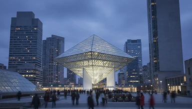 Полностью стеклянная улица в Москве, 2005 год. Стиль - фотореализм. Стилизуй под марку с фото image | AI Emoji Generator