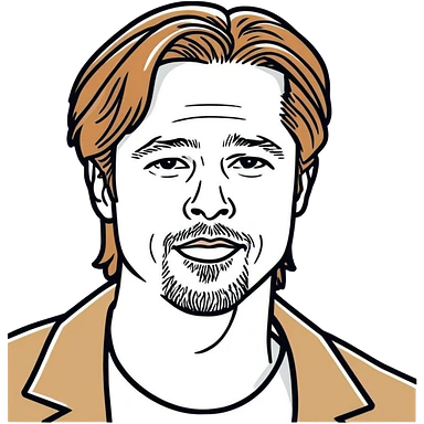 2019 Brad Pitt, celebrity and actor hperrealistic, mirco-detailed, vivid, bold colo=s, 3D sticker design Must be 8k hd, 8000x8000px resolution. Must use very thin transparent smooth lines emoji