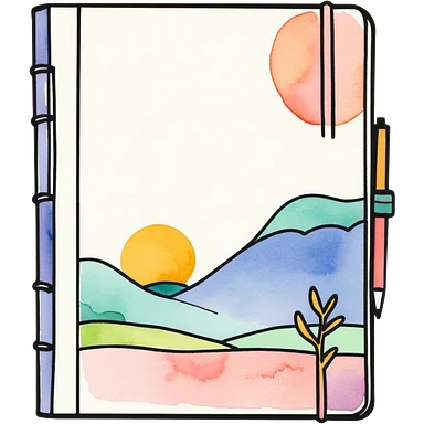 A closed soft blue diary with tiny cute Doodle drawings on the front cover, detailed watercolor illustration, isolated die cut sticker. Must be 8k, dpi 300 image | AI Emoji Generator