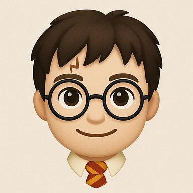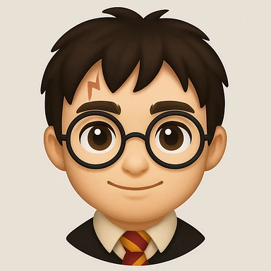 Harry Potter character with round glasses, lightning scar, wizard robe, magical style emoji