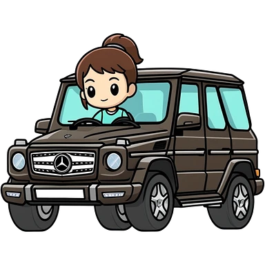 Karen driving a small black Mercedes Benz SUV  emoji