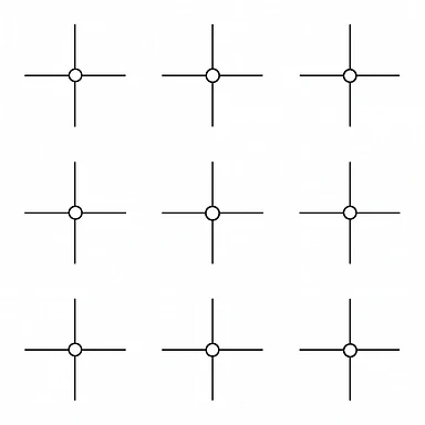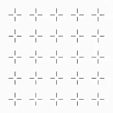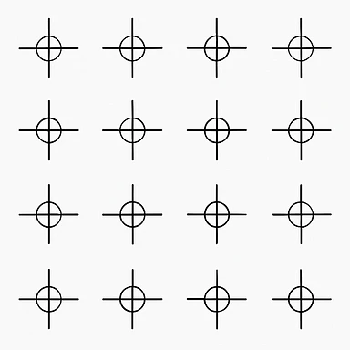 a series of layout markings spaced in an even symmetrical grid, as in camera viewfinder crosshairs. black and white high contrast, precision optics image | AI Emoji Generator
